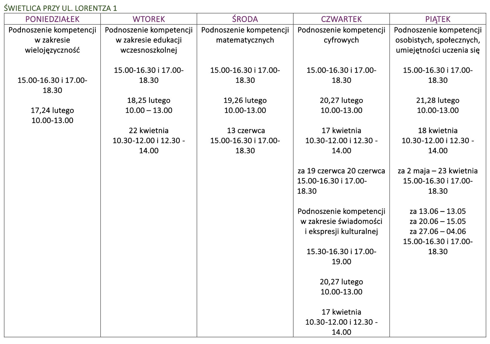 Aktualizacja harmonogramu na rok szkolny 2024/2025